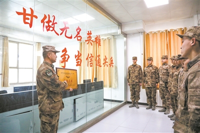 新兵們參觀(guān)機(jī)房,了解紅山河機(jī)務(wù)站光輝歷史。