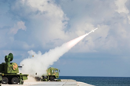 海口艦發(fā)射對(duì)空導(dǎo)彈攔截目標(biāo)。李章龍 攝