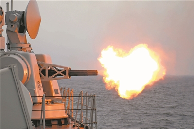 “戰(zhàn)斗警報(bào)!”編隊(duì)剛剛抵達(dá)目標(biāo)海域,參訓(xùn)某艦率先接到主炮對(duì)海射擊命令,迅速進(jìn)行戰(zhàn)斗準(zhǔn)備。“開火!”指揮員果斷下達(dá)指令,炮彈呼嘯而出。隨后,編隊(duì)各艦集中火力,對(duì)海上目標(biāo)進(jìn)行打擊。海面硝煙未散,“敵機(jī)”又發(fā)起突襲,編隊(duì)迅速組成防空隊(duì)形展開抗擊。
