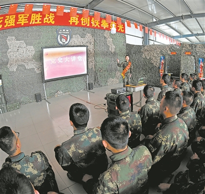 駐訓(xùn)官兵參加黨史學(xué)習(xí)教育。