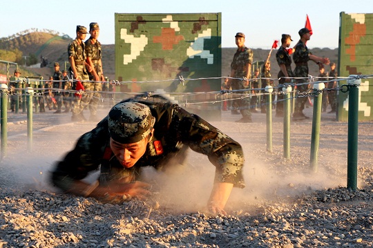 比武競賽中特戰(zhàn)隊員通過400米障礙。彭安田 攝