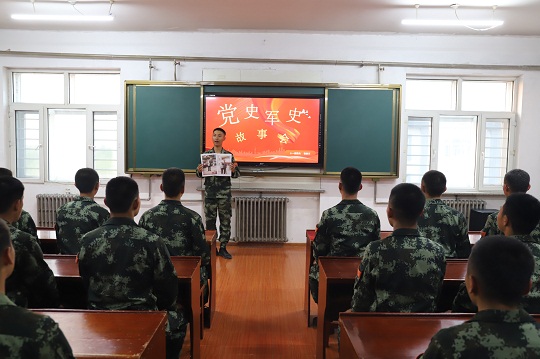 站在講臺(tái)上演講的叫崔浩天,是武警黑龍江總隊(duì)齊齊哈爾支隊(duì)剛?cè)胛榈男卤?。這個(gè)演講是支隊(duì)開展的“黨史軍史故事會(huì)”系列活動(dòng)。