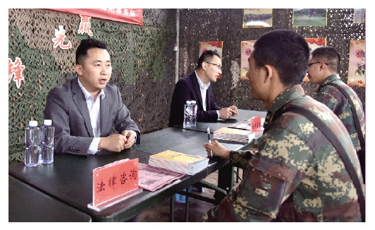 近日,96716部隊協(xié)調駐地司法機關,聘請法律專家進軍營開展普法宣傳,為駐訓官兵提供免費法律援助服務。圖為專家一對一解答法律問題。