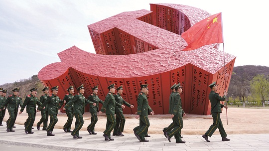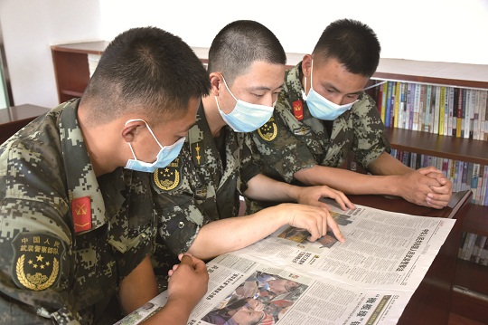 圖為武警陜西總隊(duì)延安支隊(duì)執(zhí)勤一中隊(duì)官兵開展主題黨日活動(dòng)。黨鵬鑫 攝