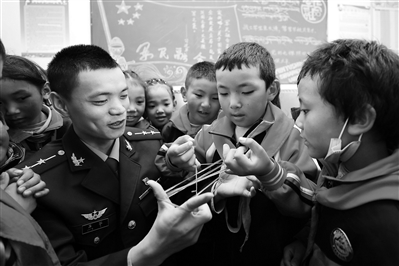 西藏軍區(qū)邊防某團官兵與駐地小學(xué)學(xué)生開展聯(lián)誼活動。張志輝攝