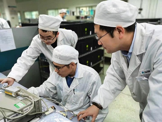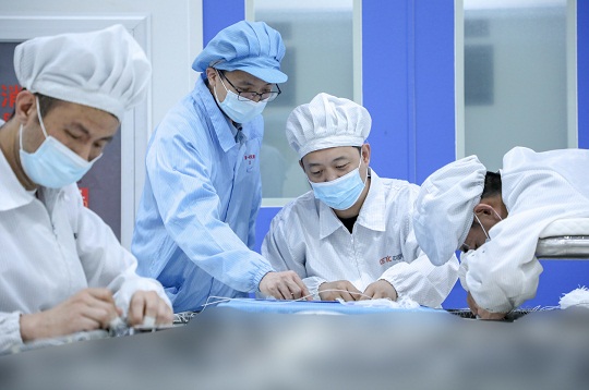 圖為科研團隊在半剛性太陽電池陣生產(chǎn)現(xiàn)場。尹冬寧 攝