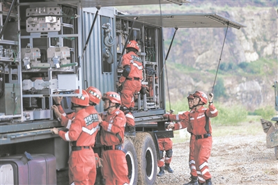 圖②:到達(dá)救援地點(diǎn)后,官兵迅速展開裝備。