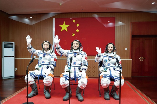 圖為神舟十三號(hào)航天員乘組出征。楊志遠(yuǎn) 攝