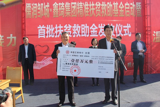圖為2015年,出資1000萬(wàn)成立山東省首家精準(zhǔn)扶貧救助資金,面向周邊群眾開展精準(zhǔn)救助。