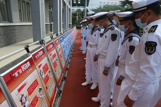 近年來,為幫助新兵扣好第一粒法紀(jì)扣、邁好由民到兵轉(zhuǎn)變的第一步,每年新兵下連前都編發(fā)《新兵法律知識(shí)手冊(cè)》,以官兵提問、律師說法的形式,對(duì)兵役制度、軍人優(yōu)待、尊干愛兵、保守秘密等36個(gè)方面法律法規(guī)進(jìn)行宣傳普法。針對(duì)軍人軍屬涉法問題日益增多,官兵對(duì)維權(quán)內(nèi)容不清晰、維權(quán)流程不熟悉等問題,印發(fā)《海軍官兵涉軍維權(quán)實(shí)用指南》,做到基層有所需,機(jī)關(guān)有所應(yīng)。圍繞酒駕醉駕、婚戀糾紛、軍人權(quán)益保障、個(gè)人信息安全等部隊(duì)普遍關(guān)注的熱點(diǎn)問題,組織專業(yè)力量編寫案例釋法普法專版、預(yù)防犯罪教育專題,用官兵身邊的案例、關(guān)切的法條析案明理。