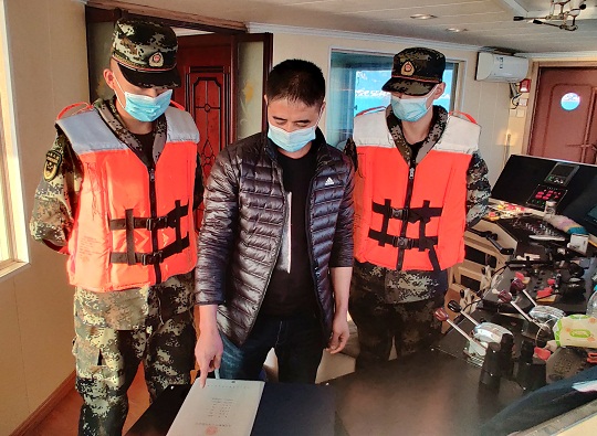 圖為海警執(zhí)法人員了解相關(guān)情況。