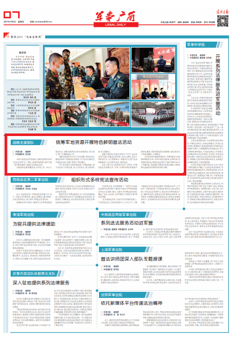 為提高普法教育覆蓋面、針對性,進一步壯大普法隊伍,戰(zhàn)略支援部隊各單位因地制宜、借力地方,做了大量基礎性工作。