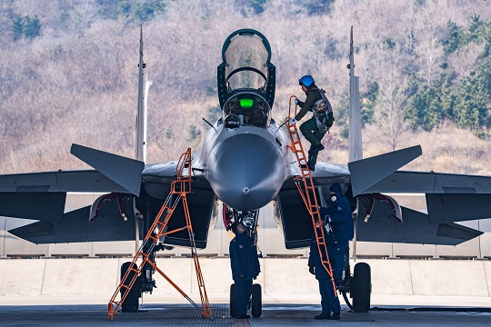 海軍航空大學(xué)某基地組織飛行訓(xùn)練,圖為飛行教官在機(jī)務(wù)人員的幫助下登上殲-15戰(zhàn)機(jī)。萬(wàn)全 攝