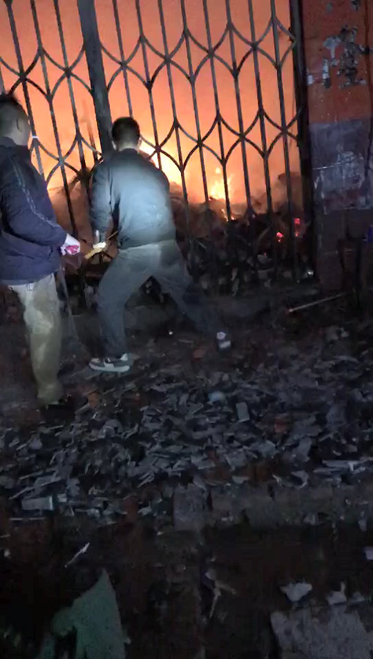 由于小型消防車容量有限,需要多次返回補(bǔ)水。就在第一次補(bǔ)水間隙,屋內(nèi)火勢(shì)反彈,很快就燒到了三樓。突然有人喊道:“樓里可能還有人!”,在場(chǎng)眾人心頭一緊??吹揭粯谴箝T還有道鎖著的鐵門,吳沛燭急忙取來一根撬棒,組織救助人員一起反復(fù)敲打門鎖,最終成功將鐵門撬開。踹開鐵門后,吳沛燭準(zhǔn)備進(jìn)樓救人,被人拉住并得知,樓內(nèi)居民已安全撤離到隔壁樓。