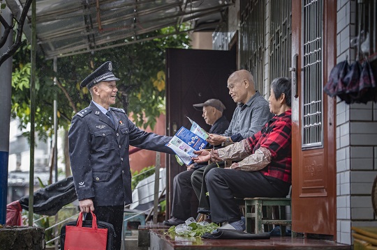 如今,年過半百的于伍生依然帶著工作時的“標(biāo)配”:一個手提袋、一本筆記本、一疊名片、一臺執(zhí)法儀、一支筆,走進(jìn)一街一區(qū)、一家一戶。