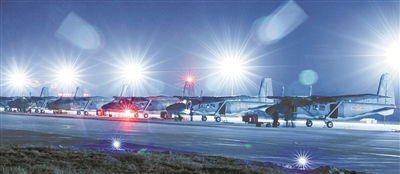 夜幕降臨,機(jī)場(chǎng)航燈閃爍。隨著指揮員一聲令下,多架運(yùn)輸機(jī)再次接續(xù)起飛,在預(yù)定空域集結(jié)編隊(duì)。隨后,借著茫茫夜色掩護(hù),編隊(duì)向目標(biāo)空域隱蔽機(jī)動(dòng),展開(kāi)地面目標(biāo)識(shí)別等課目訓(xùn)練……
