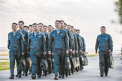 飛行員列隊(duì)進(jìn)入訓(xùn)練場(chǎng)。