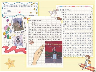 圖①:南京市后標營小學學生寫給梧桐溝邊防連官兵的信。楊磊 設計制作