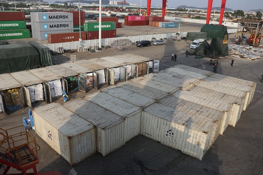 圖為執(zhí)法員打開(kāi)貨柜進(jìn)行檢查。廣東海警局供圖