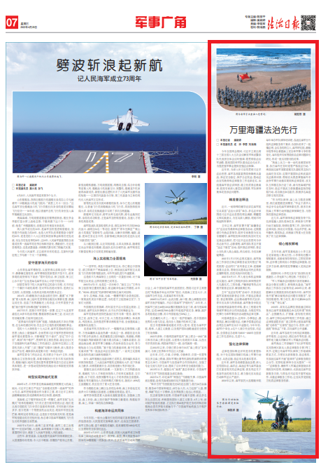 去年以來(lái),海軍部署開(kāi)展“海疆普法行”法治宣傳教育和法律服務(wù)活動(dòng),定期邀請(qǐng)中央政法委領(lǐng)導(dǎo)、院所專家教授為官兵專題輔導(dǎo)。海軍院校和訓(xùn)練機(jī)構(gòu)及時(shí)充實(shí)完善法治教材,把習(xí)近平法治思想列為學(xué)員必讀書目、必修課程。海軍部隊(duì)常態(tài)開(kāi)展“送法下基層”活動(dòng),組織普法講師團(tuán)、普法小分隊(duì)深入高山海島、碼頭場(chǎng)站,為官兵解疑釋惑。