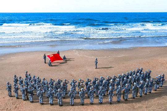 圖為海軍官兵重溫入黨誓詞。