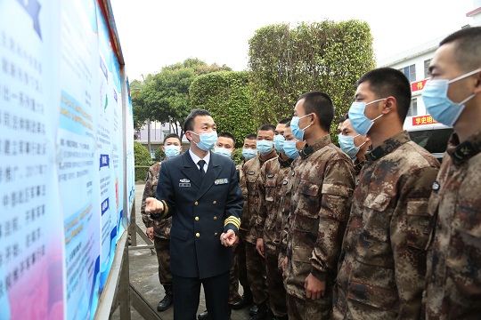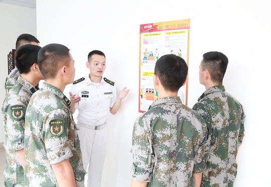 圖為制作涉軍維權掛圖,為官兵講解涉軍維權政策法規(guī)。