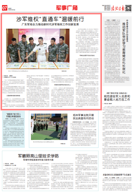 廣州軍事法院依托強軍網涉軍維權信息服務平臺,開通軍線熱線電話,并通過南部戰(zhàn)區(qū)和廣東省委政法委等微信公眾號推送信息,使涉軍維權機制深入部隊。