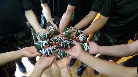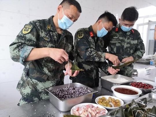 傍晚,結(jié)束任務(wù)的執(zhí)法員們在餐廳自己動手包粽子?!斑@是我第一次學著包粽子,雖然包得奇形怪狀,但是我覺得特別有意義?!眻?zhí)法員小李笑著說。
