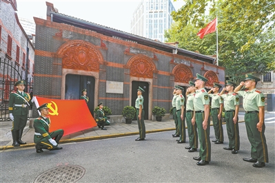 夏日申城,滿目綠色。站在武警上海市總隊(duì)執(zhí)勤第四支隊(duì)十中隊(duì)營(yíng)房頂層望去,一座紅色基調(diào)浸染的石庫(kù)門建筑,在現(xiàn)代都市建筑群中格外醒目。那里,正是黨的一大會(huì)址。