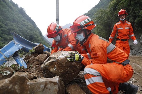 凌晨時分,李榮吉率領應急救援隊伍,向距離駐點17公里外的大池溝村疏通道路,巨龍般的救援部隊沿315國道時而盤山而上,時而環(huán)山而下。由于不間斷的余震,不時有石頭和泥沙從頭頂飛下,一路上官兵們遇到多次塌方,公路全被亂石和爛泥淹沒,很多地方無路可走。