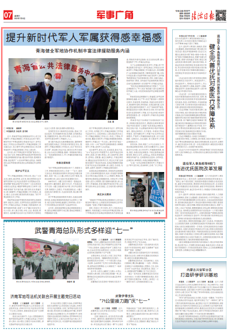 青海軍地各級(jí)涉軍維權(quán)機(jī)構(gòu)堅(jiān)持把弘揚(yáng)愛國(guó)擁軍,營(yíng)造關(guān)心國(guó)防、支持軍隊(duì)的社會(huì)氛圍作為維護(hù)軍人軍屬合法權(quán)益工作基礎(chǔ)工程抓緊抓好。統(tǒng)籌軍地教育資源,組建“1+8+N”藏漢雙語(yǔ)宣傳文化小分隊(duì),深入重點(diǎn)寺院、學(xué)校、企業(yè)、敬老院、聯(lián)建村莊,赴涉藏州縣宣講習(xí)近平新時(shí)代中國(guó)特色社會(huì)主義思想,強(qiáng)化各族群眾國(guó)防觀念。