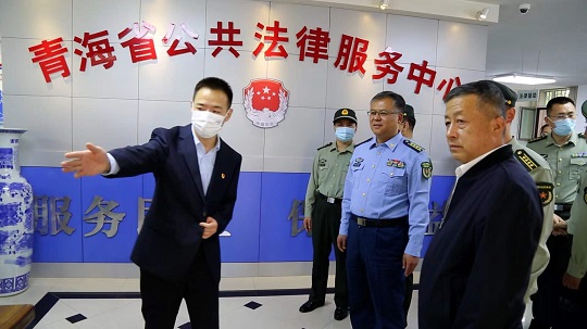 圖為青海軍地領(lǐng)導(dǎo)到省公共法律服務(wù)中心調(diào)研。