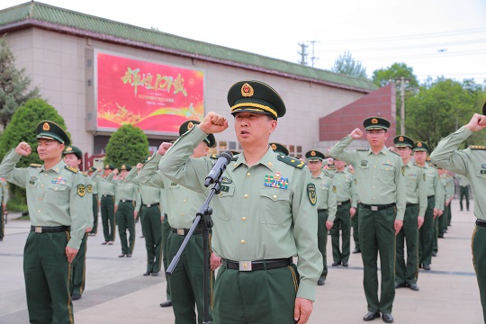 圖為武警青海總隊少將政治委員楊志強領(lǐng)誓。朱曉坷 攝