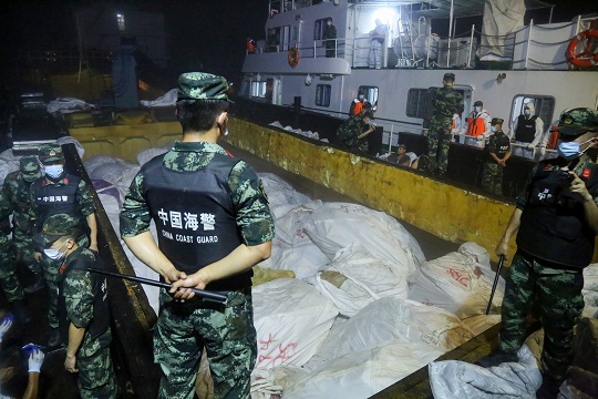 7月15日,山東煙臺(tái)海警局成功查獲一起涉嫌走私凍品案,現(xiàn)場(chǎng)抓獲嫌疑人27人、查扣涉嫌走私凍品船舶1艘、涉案車輛15輛,查獲凍品約300噸。