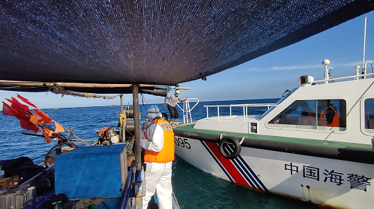 圖為成功將該遇險漁民轉(zhuǎn)移至執(zhí)法艇。