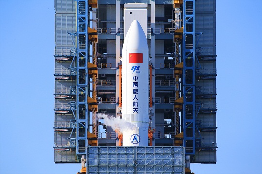 圖為搭載問天實驗艙的長五B遙三運載火箭。屠海超 攝