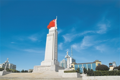 圖①:2022年八一建軍節(jié)前夕,南昌市八一廣場(chǎng)上,八一南昌起義紀(jì)念塔頂端鮮紅的軍旗在陽光下熠熠生輝。盧成行攝