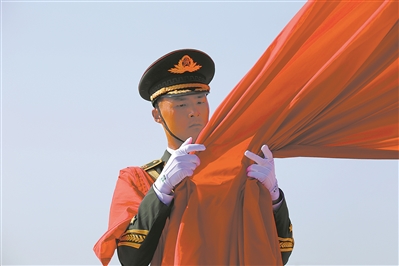 萬眾矚目,凝望這抹“從旭日上采下的紅”。對(duì)國(guó)旗護(hù)衛(wèi)隊(duì)官兵而言,國(guó)旗不只是擎在手中的旗幟,更是置于心間的珍寶。