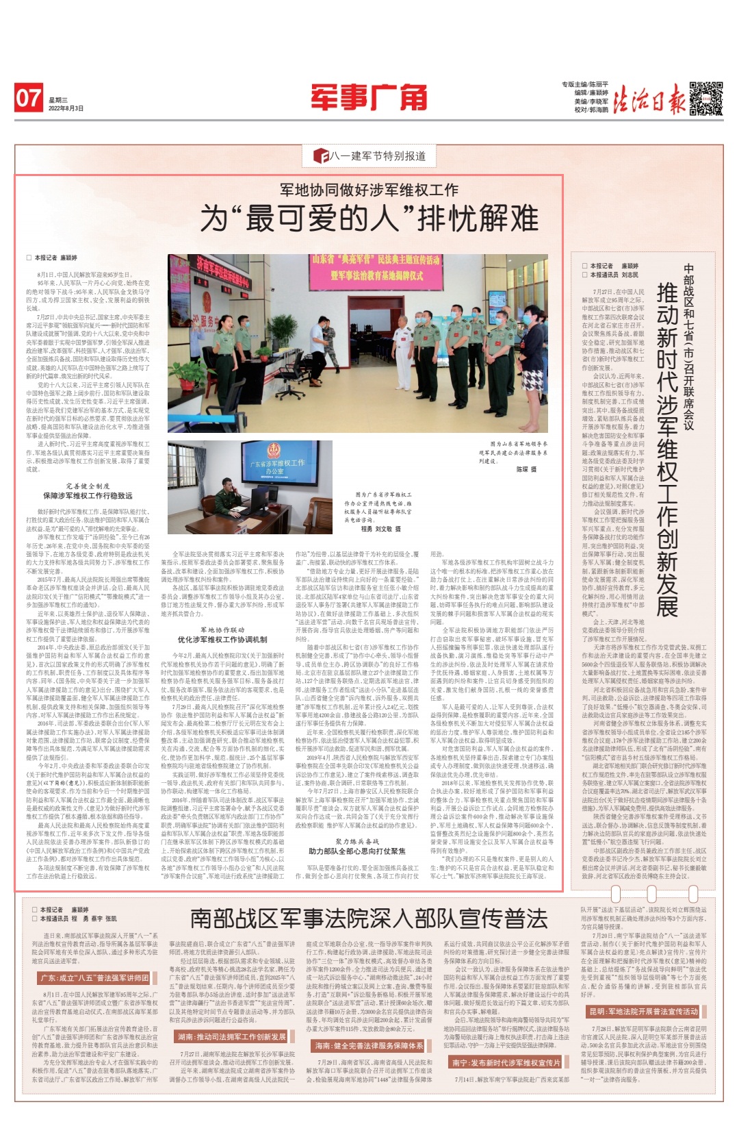 全軍法院堅(jiān)決貫徹落實(shí)習(xí)近平主席和軍委決策指示,按照軍委政法委員會(huì)部署要求,聚焦服務(wù)備戰(zhàn)、改革和建設(shè),全面加強(qiáng)涉軍維權(quán)工作,積極協(xié)調(diào)處理涉軍維權(quán)糾紛和案件。