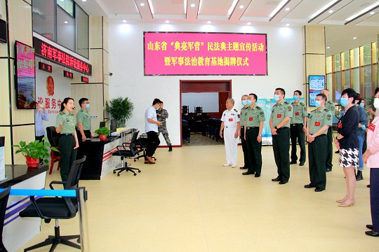 圖為山東省軍地領(lǐng)導(dǎo)參觀軍民共建公共法律服務(wù)系列建設(shè)。陳琛 攝