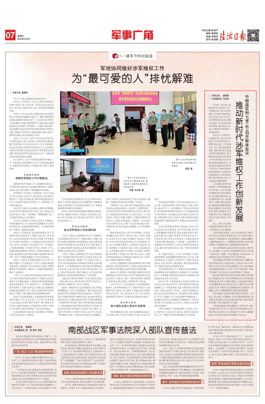 7月27日,在中國(guó)人民解放軍建軍95周年之際,中部戰(zhàn)區(qū)和七省(市)涉軍維權(quán)工作第四次聯(lián)席會(huì)議在河北省石家莊市召開。會(huì)議聚焦練兵備戰(zhàn),著眼安全穩(wěn)定,研究加強(qiáng)軍地協(xié)作措施,推動(dòng)戰(zhàn)區(qū)和七?。ㄊ校┬聲r(shí)代涉軍維權(quán)工作創(chuàng)新發(fā)展。