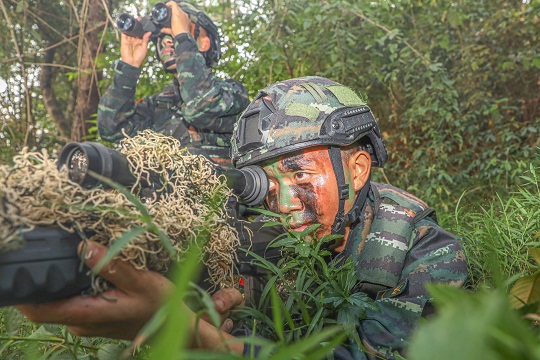 圖為狙擊小組占領(lǐng)制高點(diǎn)準(zhǔn)備對(duì)目標(biāo)實(shí)施精準(zhǔn)打擊。