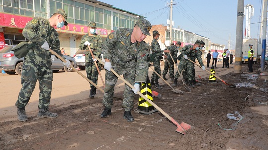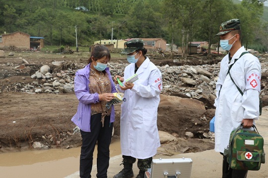 其余官兵在村子里幫助清理民房,安撫群眾,對不穩(wěn)固的圍墻、樹木等進(jìn)行加固或拆除,防止發(fā)生危險(xiǎn)。幾名軍醫(yī)和衛(wèi)生員挨家挨戶為村民檢查身體并送去藥品,一位村民緊緊握著軍醫(yī)相美娟的手,哽咽著說:“我們沒有遇到過這樣的事,幸虧有武警官兵幫助,真不知道怎么感謝親人!”