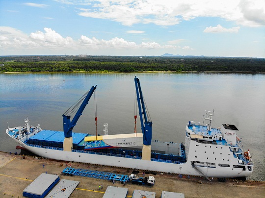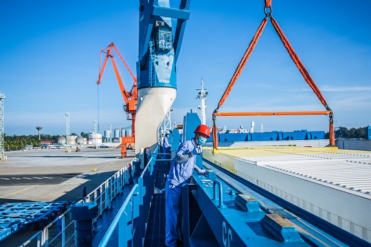 8月下旬,兩艘火箭運(yùn)輸船先后從天津港起航,先期出發(fā)的遠(yuǎn)望21號(hào)船經(jīng)過(guò)6晝夜的海上航行,途經(jīng)渤海、黃海、東海、南海等海域,于8月29日安全??亢D衔牟鍨懜?。隨后出發(fā)的遠(yuǎn)望22號(hào)船于9月1日抵達(dá)清瀾港,到達(dá)港口后兩船立即展開(kāi)了火箭吊裝相關(guān)工作。