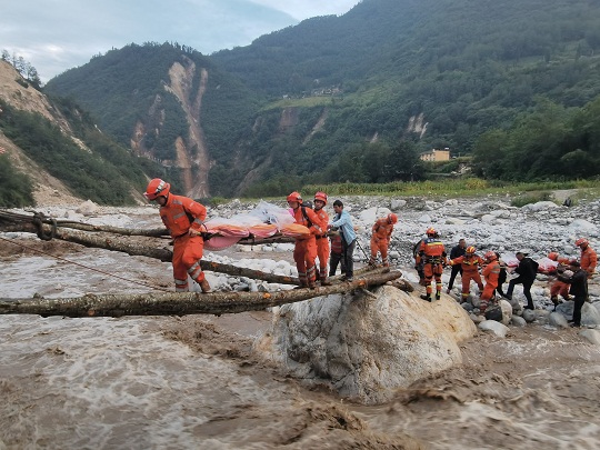 9月5日,四川省甘孜藏族自治州瀘定縣發(fā)生6.8級(jí)地震后,武警四川總隊(duì)機(jī)動(dòng)第二支隊(duì)官兵趕赴現(xiàn)場(chǎng)展開救援。圖為官兵在瀘定縣磨西鎮(zhèn)磨子溝村搭建臨時(shí)木橋,轉(zhuǎn)移被困群眾。本報(bào)通訊員洪福樂(lè) 攝