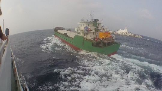 當(dāng)日凌晨2時(shí)許,廣東海警局接群眾報(bào)警稱(chēng),在擔(dān)桿水道附近海域有一艘可疑船舶往擔(dān)桿島以南附近海域航行。接報(bào)后,該局立即派遣執(zhí)法艇前往目標(biāo)海域進(jìn)行查緝。執(zhí)法艇到達(dá)目標(biāo)海域后對(duì)海面全方位進(jìn)行搜索,并在凌晨4時(shí)30分,成功在目標(biāo)海域發(fā)現(xiàn)該艘可疑船只。執(zhí)法員隨即對(duì)其進(jìn)行喊話(huà)示警,但該嫌疑船拒不停船接受檢查,且試圖改變航向,加速逃竄,執(zhí)法艇立即調(diào)整航向航速對(duì)其進(jìn)行追緝。