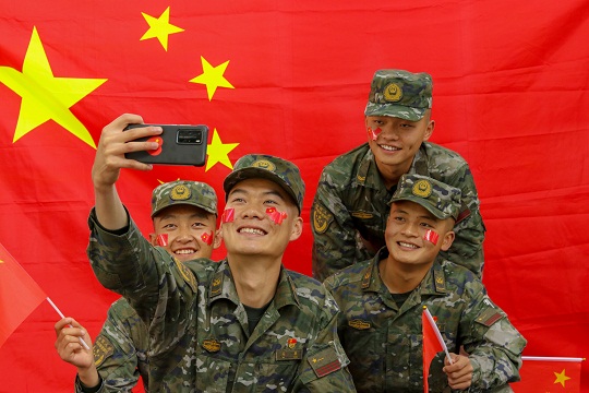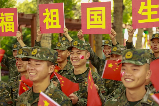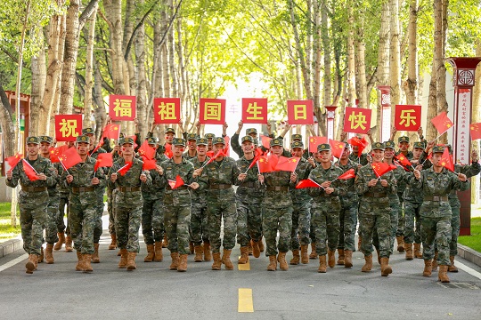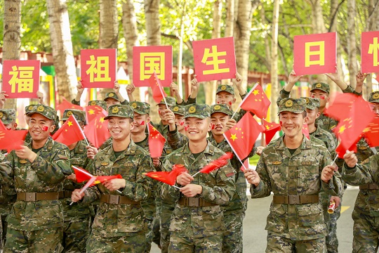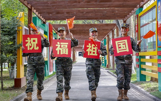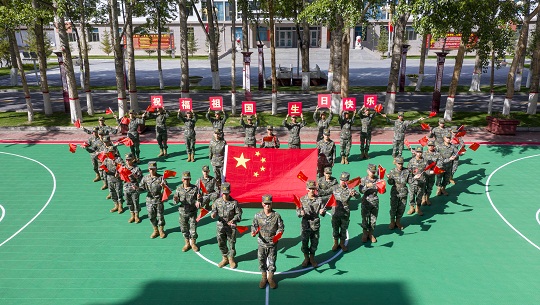 國(guó)慶前夕,武警青海總隊(duì)開(kāi)展“向祖國(guó)深情告白”主題活動(dòng),官兵們通過(guò)與國(guó)旗合影、組織升旗儀式等形式,向偉大祖國(guó)深情告白,祝福偉大祖國(guó)繁榮昌盛。圖為官兵揮舞國(guó)旗喜迎國(guó)慶。