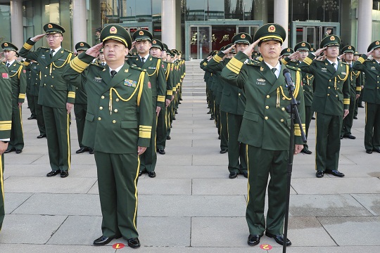 “同志們,黨在號(hào)召、祖國在呼喚、人民在期待,時(shí)代催人奮進(jìn),我們要堅(jiān)定愛黨的信念、強(qiáng)化愛國的情懷、盡好衛(wèi)國的責(zé)任、扛起強(qiáng)國的擔(dān)當(dāng),為黨的事業(yè)、為國家富強(qiáng)作出軍人應(yīng)有的貢獻(xiàn)!”升旗儀式后,總隊(duì)少將政治委員楊志強(qiáng)發(fā)表了熱情洋溢的致辭。