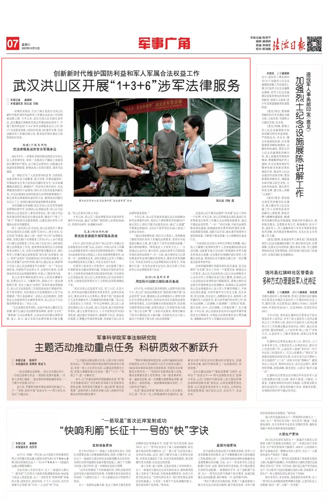 “武漢市洪山區(qū)是駐軍大區(qū)、軍工大區(qū)、兵員大區(qū),涉軍涉法問題呈現(xiàn)侵權(quán)類型多樣化、法律關(guān)系復(fù)雜化、維權(quán)訴求多元化等特點(diǎn),靠某個(gè)部門單獨(dú)辦理已無法有效解決軍人軍屬遇到的困難問題?!焙樯絽^(qū)人武部部長(zhǎng)王興松說,“針對(duì)這種情況,洪山區(qū)人武部協(xié)調(diào)洪山區(qū)人民法院、洪山司法局、地方高校和駐軍部隊(duì),建立完善軍地共議、人才共育和宣傳共促3項(xiàng)機(jī)制,通過強(qiáng)化軍地協(xié)作、建強(qiáng)骨干隊(duì)伍、營造良好氛圍,匯聚整合軍地優(yōu)勢(shì)資源,有效提升洪山區(qū)司法擁軍服務(wù)質(zhì)效?!?/p>