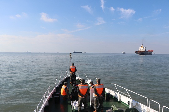 為進(jìn)一步提升巡邏管控質(zhì)效,維護(hù)轄區(qū)海域安全穩(wěn)定,山東威海海警局聯(lián)合海岸警察、漁政、海事等多家涉海職能單位,開展海上聯(lián)合巡航,對(duì)海上治安、海洋生態(tài)環(huán)境保護(hù)、海上重點(diǎn)目標(biāo)設(shè)施守護(hù)、漁船管控及嚴(yán)防疫情海上輸入等方面進(jìn)行重點(diǎn)檢查,以《中華人民共和國海警法》為重點(diǎn),對(duì)涉海人員開展普法教育,同時(shí)對(duì)漁船民進(jìn)行安全生產(chǎn)注意事項(xiàng)、疫情防控宣傳教育。涉海部門發(fā)揮各自職能優(yōu)勢(shì),形成有效聯(lián)動(dòng),起到良好成效,得到了轄區(qū)涉海企業(yè)和人員的廣泛認(rèn)可。
